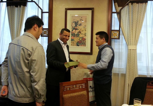 SDLG CEO Yu Mengsheng grants a gift to the Iraq dealer
