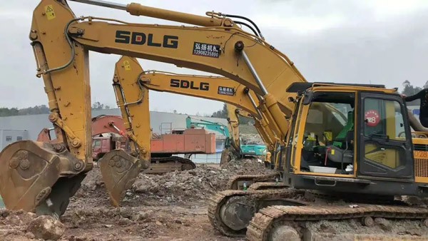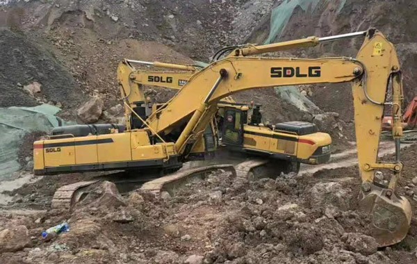 在成都某大型工地上,多台山东临工挖掘机正在繁忙施工中,E6360F、E6400F PLUS、E6500F,几乎囊括了山东临工所有的大吨位挖掘机。