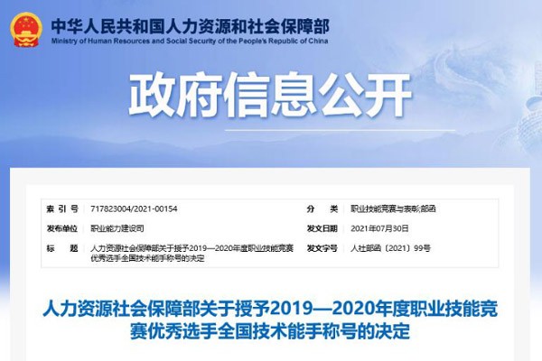 近日,人力资源和社会保障部公布《关于授予2019—2020年度职业技能竞赛优秀选手全国技术能手称号的决定》,对在2019—2020年度中国技能大赛中取得优异成绩的选手授予“全国技术能手”称号,颁发奖章、奖牌和荣誉证书。山东临工营销公司服务工程师祝令新、挖掘机事业部装配钳工吴士华获此殊荣。
