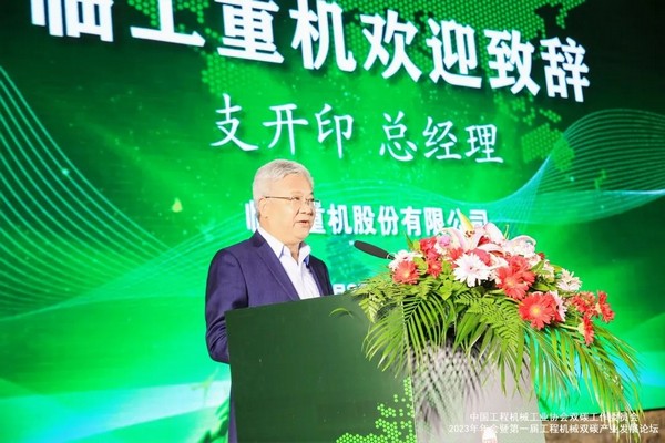 作为本次大会的承办单位——临工重机总经理支开印在致辞中表示,为积极响应国家双碳发展战略,临工重机始终秉承“集约发展、创新驱动”的发展理念,瞄准深度电动化、广泛数字化、全面低碳化,打造出了具有比较优势的核心竞争力。未来,临工重机将携手合作伙伴一同锚定碳达峰、碳中和的远景目标,在绿色产业、绿色企业领域开展更多务实合作,助推行业绿色低碳高质量发展。