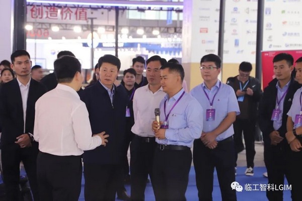 3号上午,临沂市市委书记任刚带队来到临工智科展位,临工智科总经理马兴庆为任刚书记介绍了临工智科的关节机器人等相关产品,任刚书记对此表示充分肯定,对智科发展表示深刻关切,呼吁产业链协同发展,实现合作共赢。